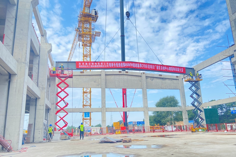 建設(shè)鋼構(gòu)順利完成彬長礦業(yè)CFB示范項目廠前區(qū)活動中心屋面鋼梁首吊