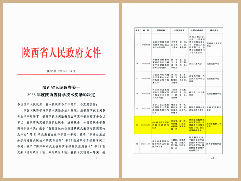 喜訊:陜建機(jī)股份榮獲陜西省科技進(jìn)步獎(jiǎng)