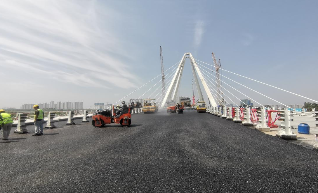 建設機械化高質量完成咸陽高科一路跨渭河大橋路面施工任務